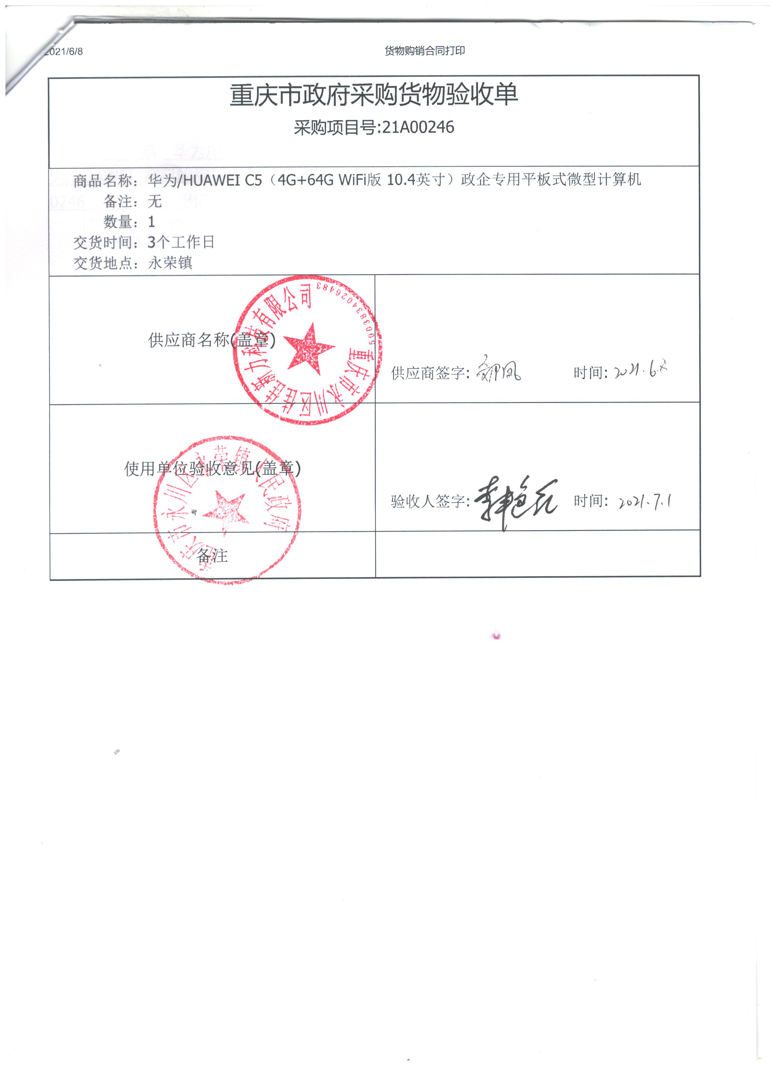 21A00246 | 重庆市永川区永荣镇365网站是正规平台吗_365bet足球网_bt365博彩 | 重庆市永川区佳佳新力科技有限公司 | 平板电脑采购 | 平板式微型计算机 | 1 | 2021/7/1 | 电子协议供货 | 2,900.00 | 集中采购 | 自行实施 |